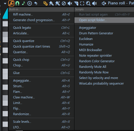 Piano roll scrips actually have a shortcut menu, if you check out this section on the piano roll: